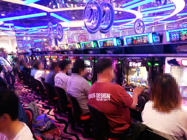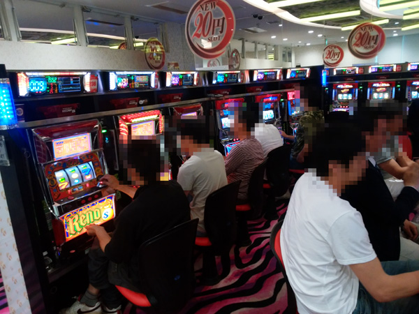 20円パチスロで人気を集めていたのは、「バジリスク~甲賀忍法帖~絆」と「押忍!番長3」。どちらもほぼ満席という盛況ぶりで、注目度の高さがうかがえた。これからの展開にも期待が持てる状況だったのか、満足げな表情で遊技するプレイヤーを確認できた。