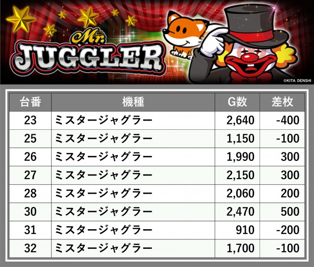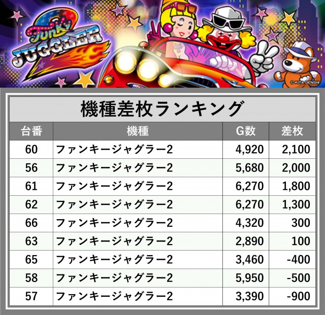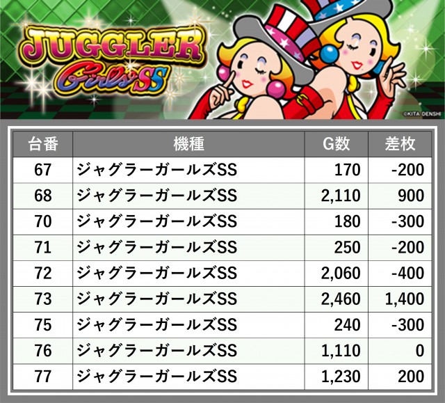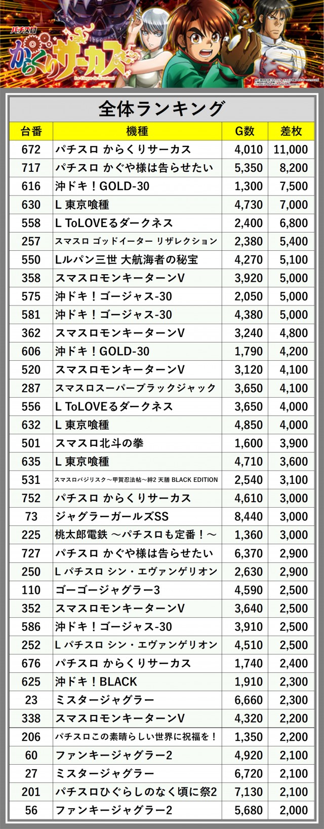 厳選された取材対象機種をはじめ、その他スロット全体から好記録が飛び出した!プレイヤーが楽しんだ1日を下記データにて振り返ってみて欲しい。