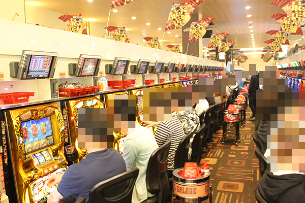 「パチスロ北斗の拳 強敵」や「ミリオンゴッド-神々の凱旋-」など、さまざまな機種で笑顔のプレイヤーを確認している。