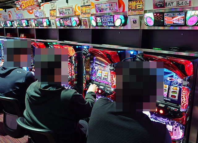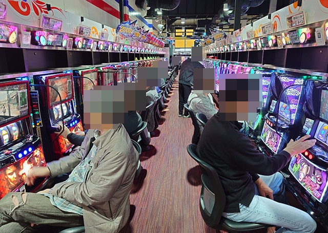 笑顔で遊技をおこなうプレイヤーが多く、パチスロ全体が大にぎわい!