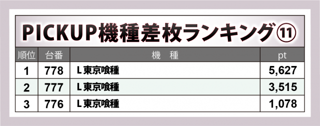『L 東京喰種』5台では3台が4桁プラスを成し遂げ、+5千6百超・+3千5百超・+1千1百弱と、プレイヤーも納得の出来となった。