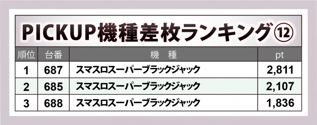 『スマスロスーパーブラックジャック』5台では勝率の高さが感じられ3台全てが4桁プラスとなったが、+3千の壁を打ち破っていればなお良かった。