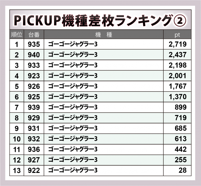 次の項から、当日の出玉データを用いて機種ごとにチェックしていく。