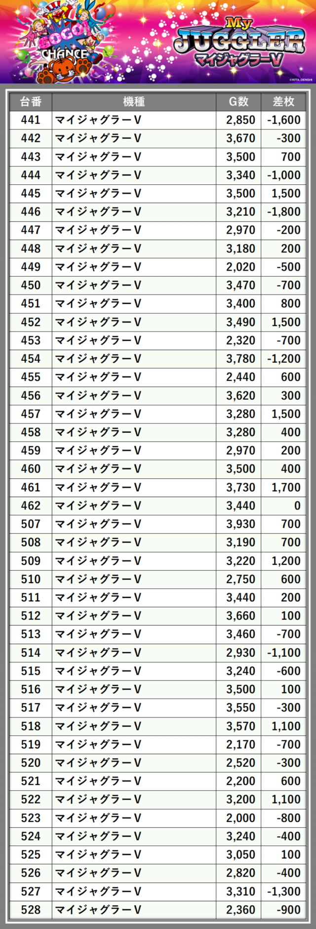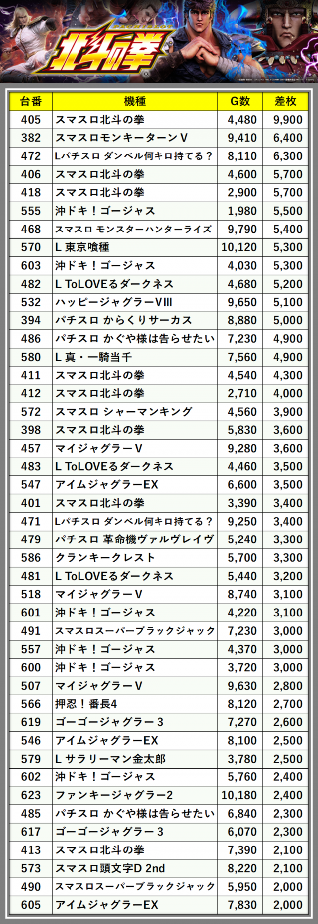 厳選された取材対象機種をはじめ、その他スロット全体から好記録が飛び出した!プレイヤーが楽しんだ1日を下記データにて振り返ってみて欲しい。