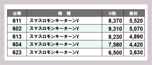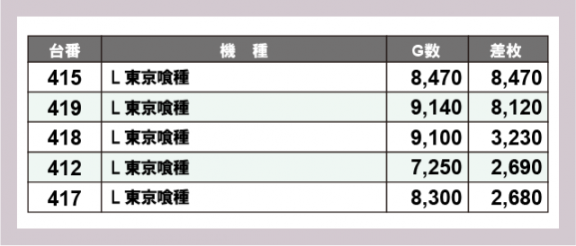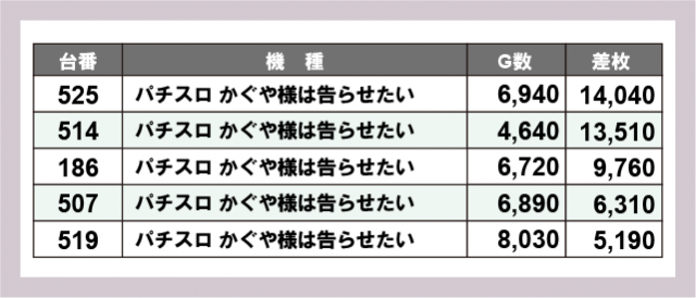 ※差枚数順に掲載しています