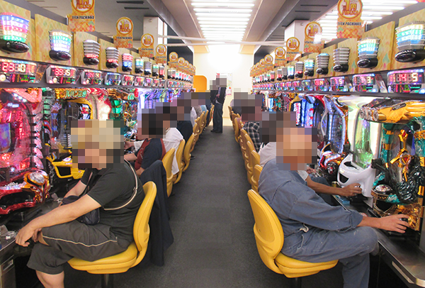 1円パチンコも人気を集めており、空き台はほとんど見当たらない。