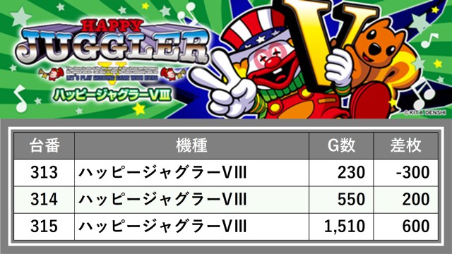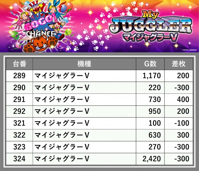 厳選された取材対象機種をはじめ、その他スロット全体から好記録が飛び出した!プレイヤーが楽しんだ1日を下記データにて振り返ってみて欲しい。