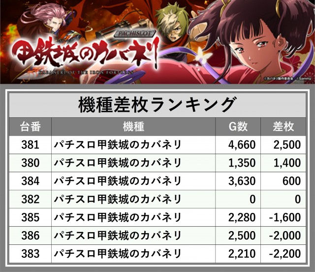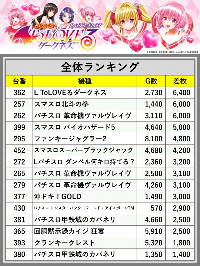 ※差枚数順に掲載しています