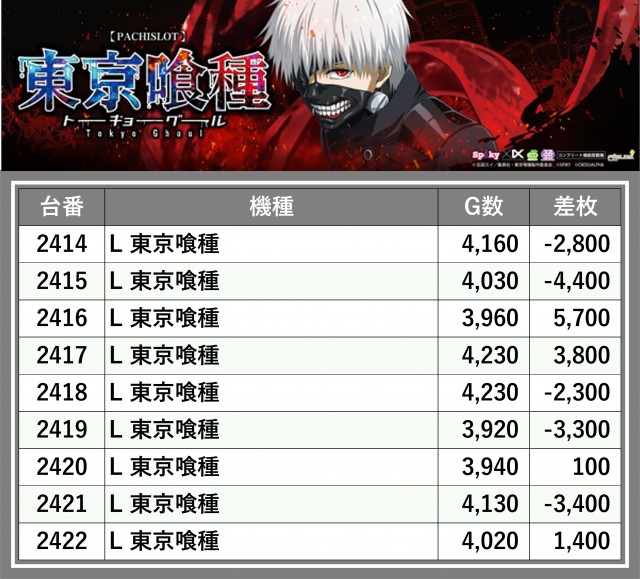 ※台番順に掲載しています