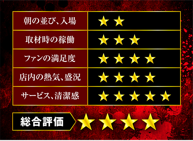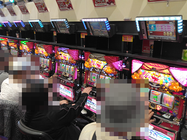 全台に各台計数機が設置されており、たくさんのプレイヤーが集まるシマでも、のびのびと遊技をおこなえそうな空間となっていた。