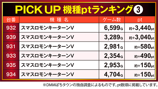 6台がプラスとなった「スマスロモンキーターンV」でも、約+3,000pt以上となった台を確認しています♪