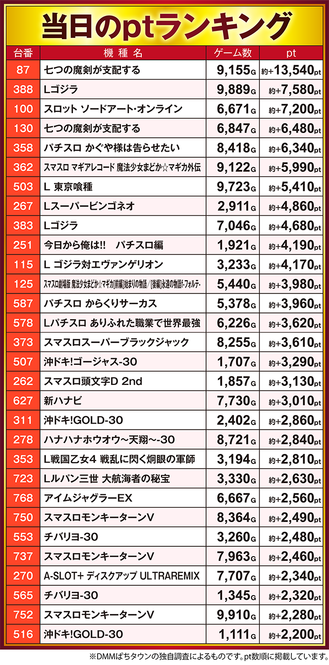 ※なお、本記事中のデータは全てDMMぱちタウンの独自調査によるものです