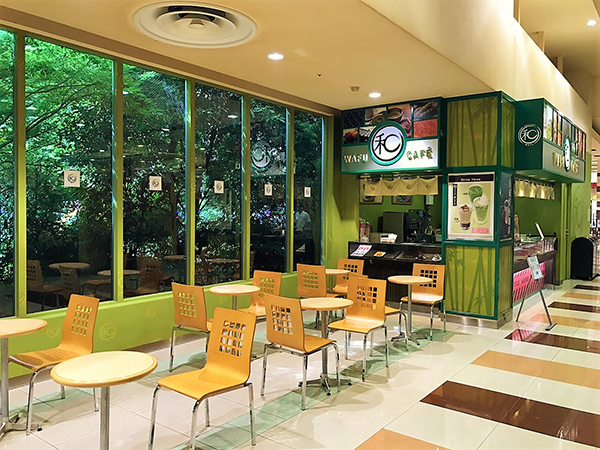 店内には和風カフェがあり、レストコーナーも広々としており、遊技に疲れてくつろぐスペースには最適。