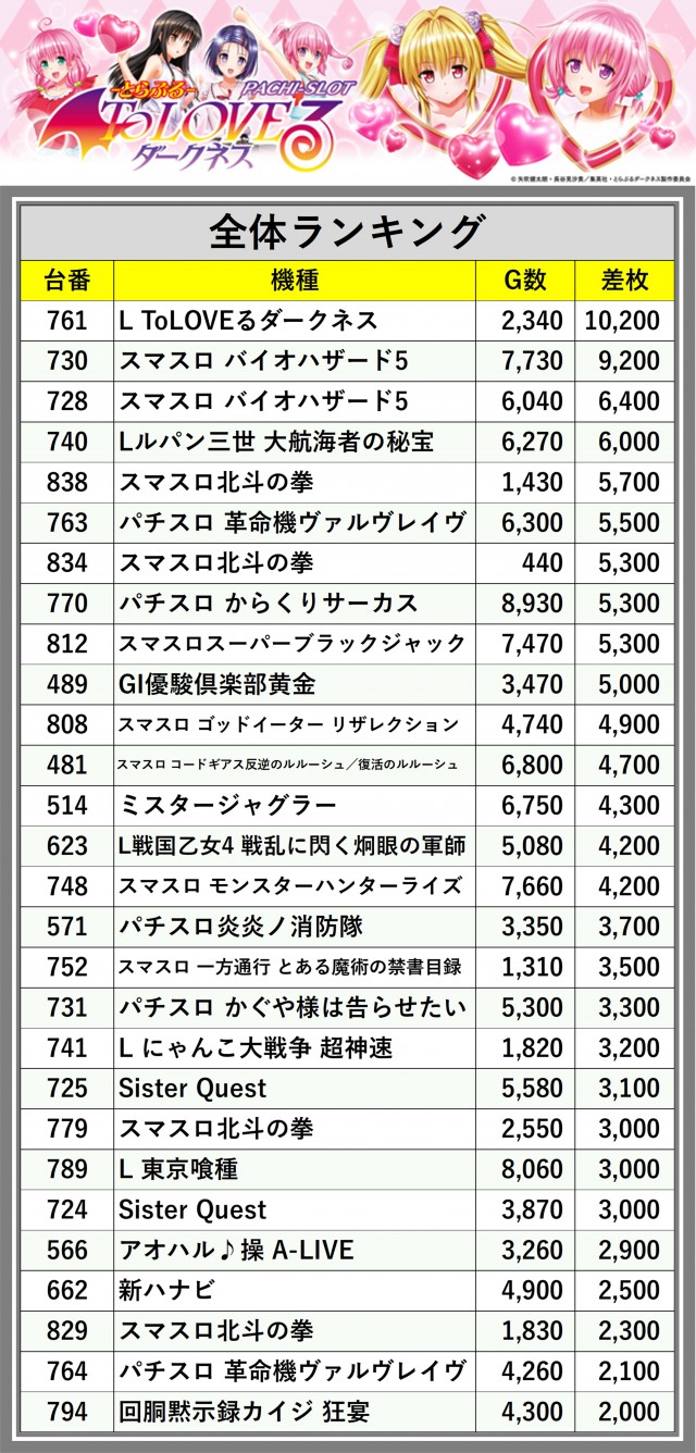 厳選された取材対象機種をはじめ、その他スロット全体から好記録が飛び出した!プレイヤーが楽しんだ1日を下記データにて振り返ってみて欲しい。