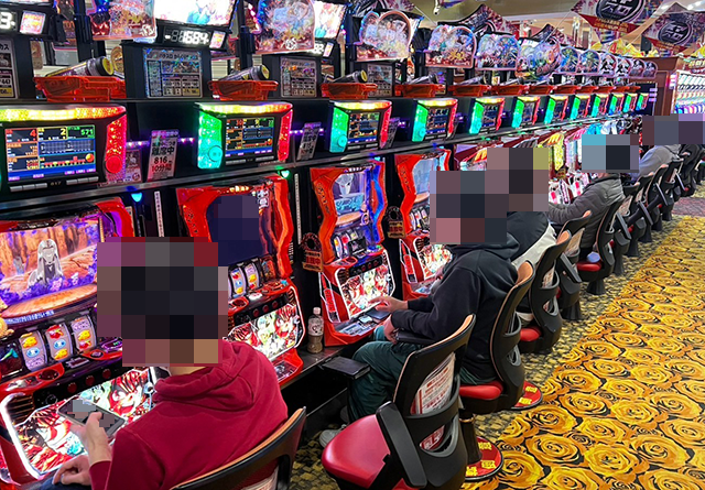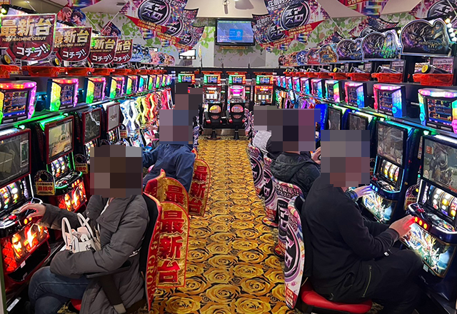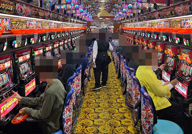 「ゴーゴージャグラー3」や「ファンキージャグラー2」にも楽しげなプレイヤーが並んでおり、活気は大きい。
