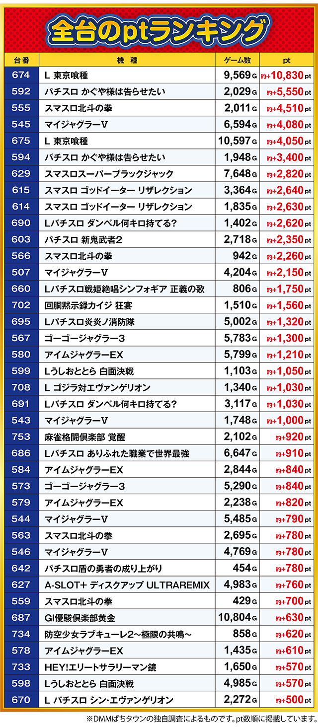 約+4,000ptを超えた545番台など、7台が結果を残した。