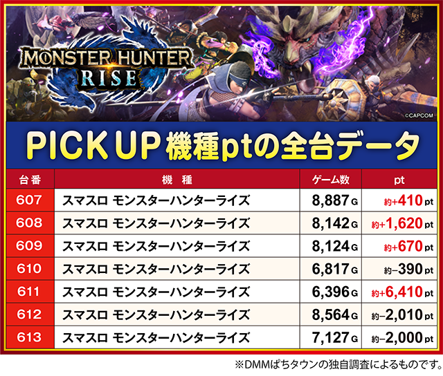「PaPaOne」では、「スマスロ モンスターハンターライズ」の611番台が約+6,500ptクラス!!