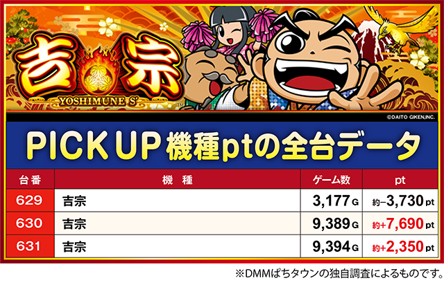 「吉宗」は2台が約+2,300ptを超え、630番台が約+7,600ptを上回った。