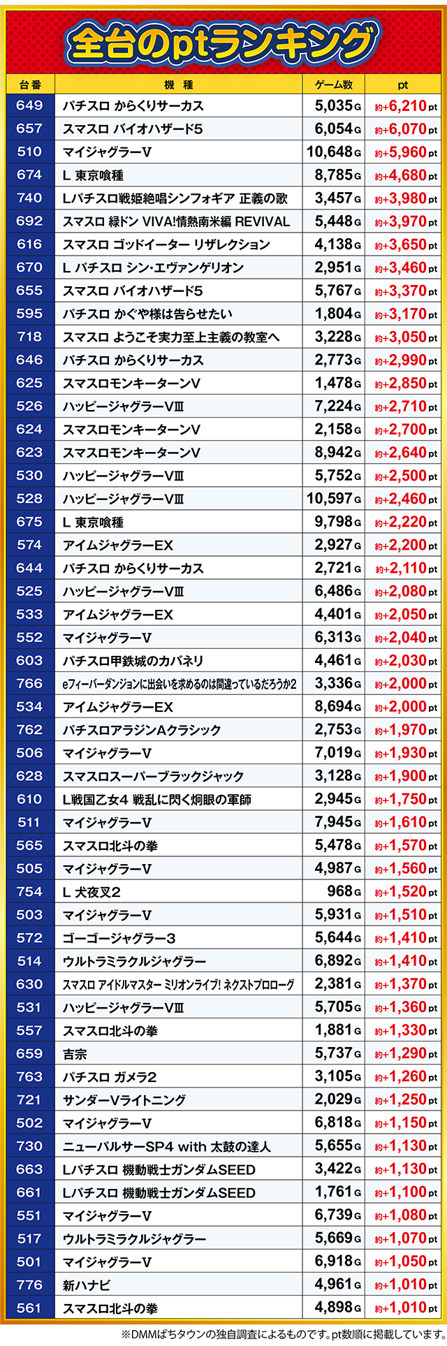 約+1,600ptを超えた608番台など、4台がプラスとなった。