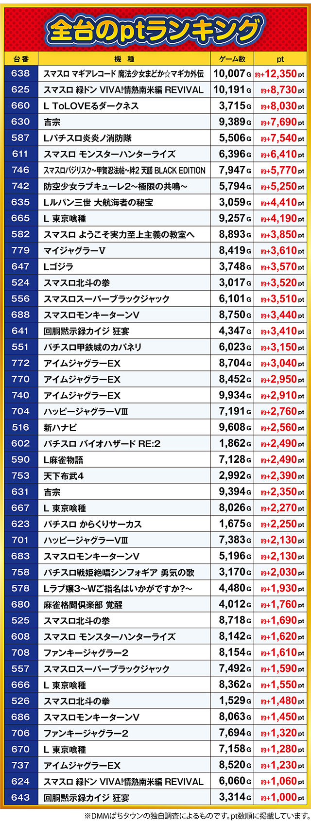 PaPaOne・全台ptランキング