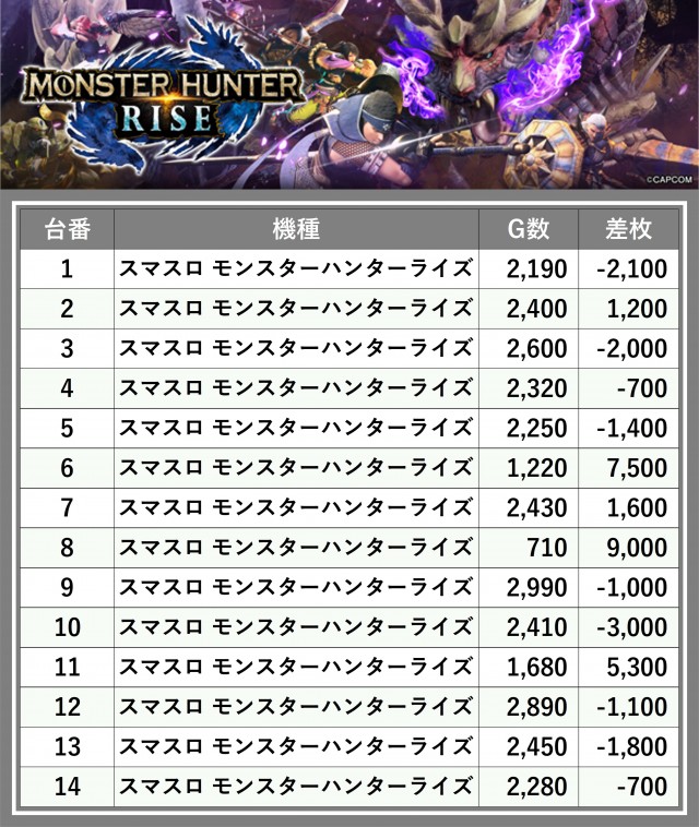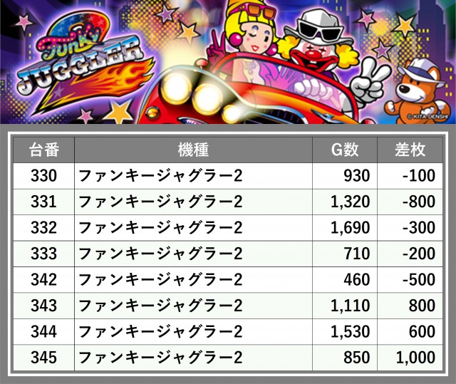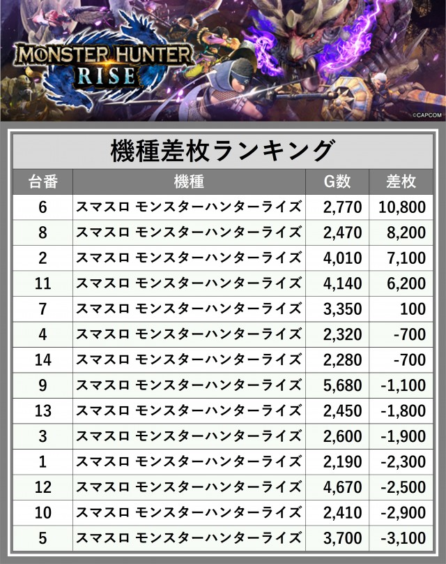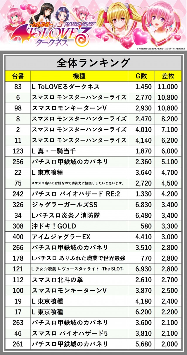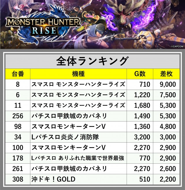 厳選された取材対象機種をはじめ、その他スロット全体から好記録が飛び出した!プレイヤーが楽しんだ1日を下記データにて振り返ってみて欲しい。