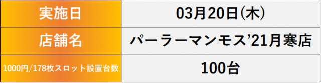 3月20日(木)パーラーマンモス’21月寒店にて、DMMぱちタウンの新感覚取材「スロセレ低貸ver.」を実施。