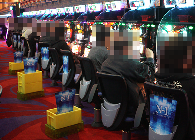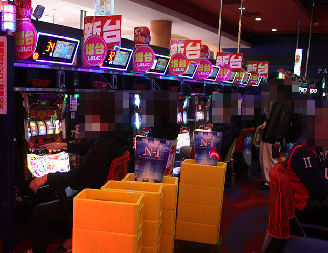 午後の早い時間帯に店内をみてみると、パチスロとパチンコのどちらにも、魅力的な光景が広がっていた。