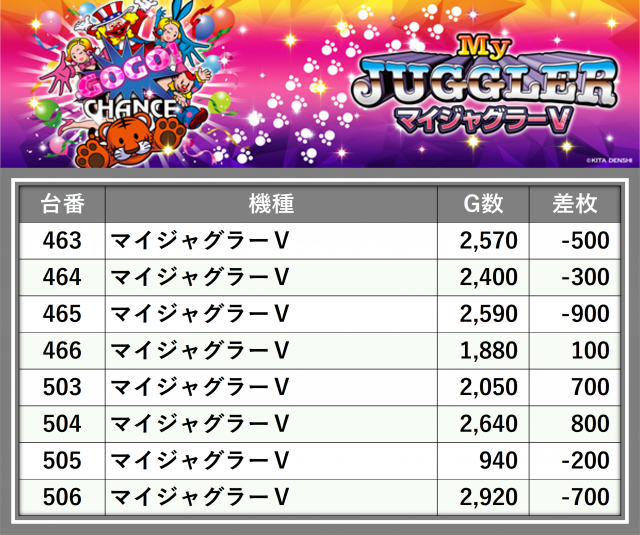 厳選された取材対象機種をはじめ、その他スロット全体から好記録が飛び出した!プレイヤーが楽しんだ1日を下記データにて振り返ってみて欲しい。