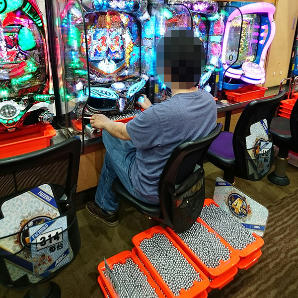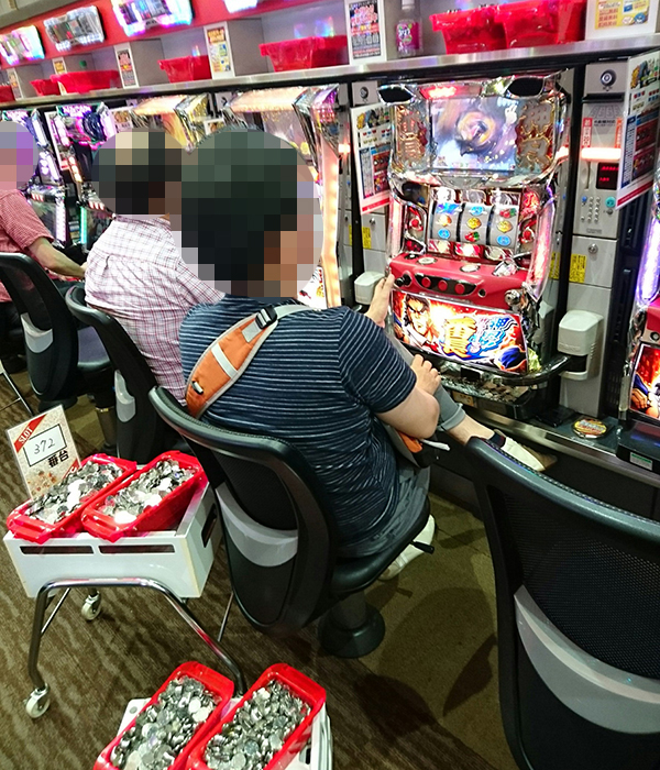 14時ごろの4円パチンコでは、「CRぱちんこ必殺仕事人Ⅴ」が盛況。ほかに、「CRスーパー海物語IN沖縄4」や「CRぱちんこ GANTZ」、「ぱちんこCR真・北斗無双」などでも活気のあるシーンを目にしている。