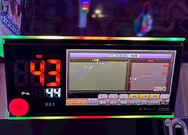 スマスロ以外にも遊技を満喫している姿があり、「パチスロ甲鉄城のカバネリ」の2台が2,000ptオーバー。