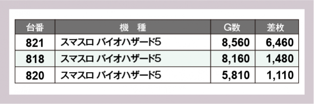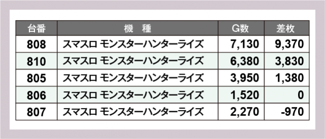 ※差枚数順に掲載しています