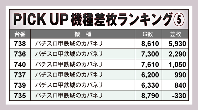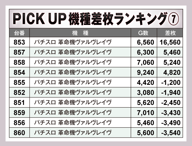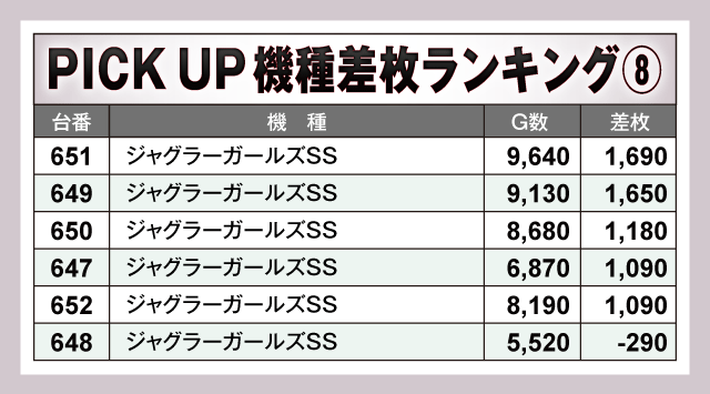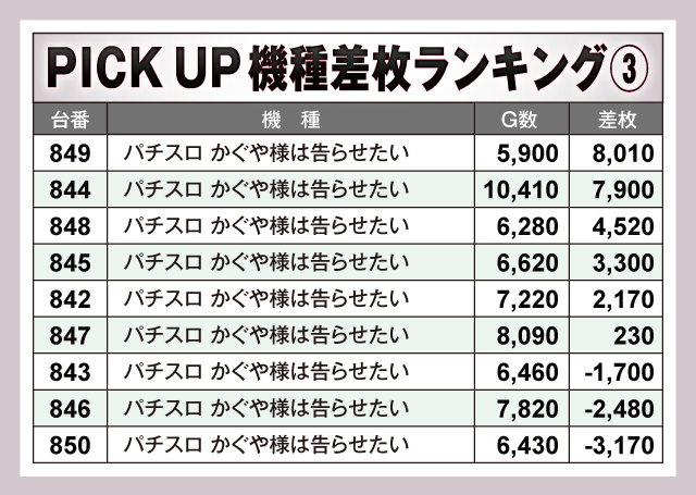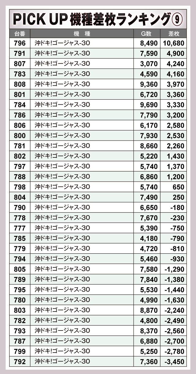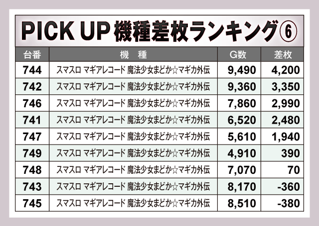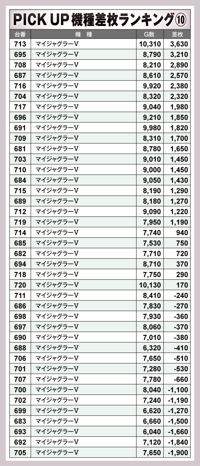 ※差枚数順に掲載しています。