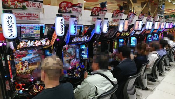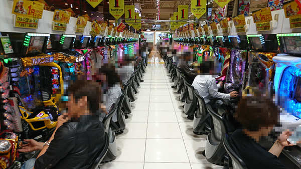15時を過ぎたころの4円パチンコを見てみると、新台の「CRぱちんこ必殺仕事人Ⅴ」と「CRAスーパー海物語IN沖縄4withアイマリン」が、フル稼働状態で大盛況。多くのプレイヤーが機種のポテンシャルを存分に発揮できていたようだ。