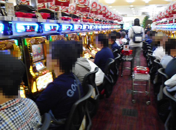並びのプレイヤーが向かった先は主にパチスロコーナーで、人気機種を中心に席が続々と埋まっていき、店内は朝から活気に満ちあふれていた。
