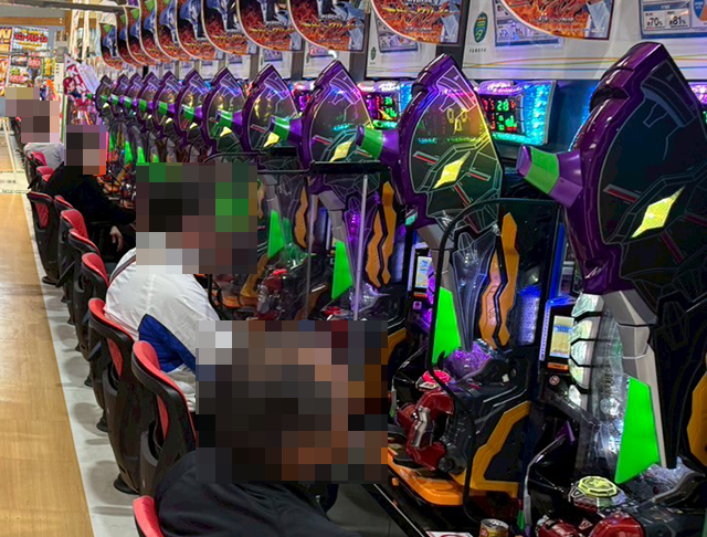 パチンコをみてみると、「新世紀エヴァンゲリオン~未来への咆哮~」にて、プレイヤーたちが楽しそうに遊技をおこなっていた。