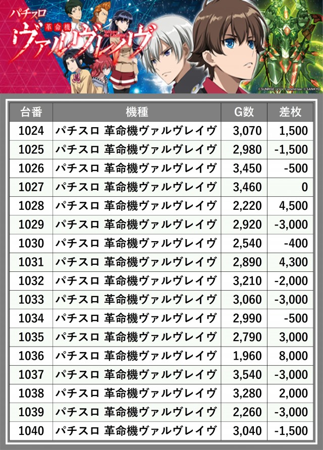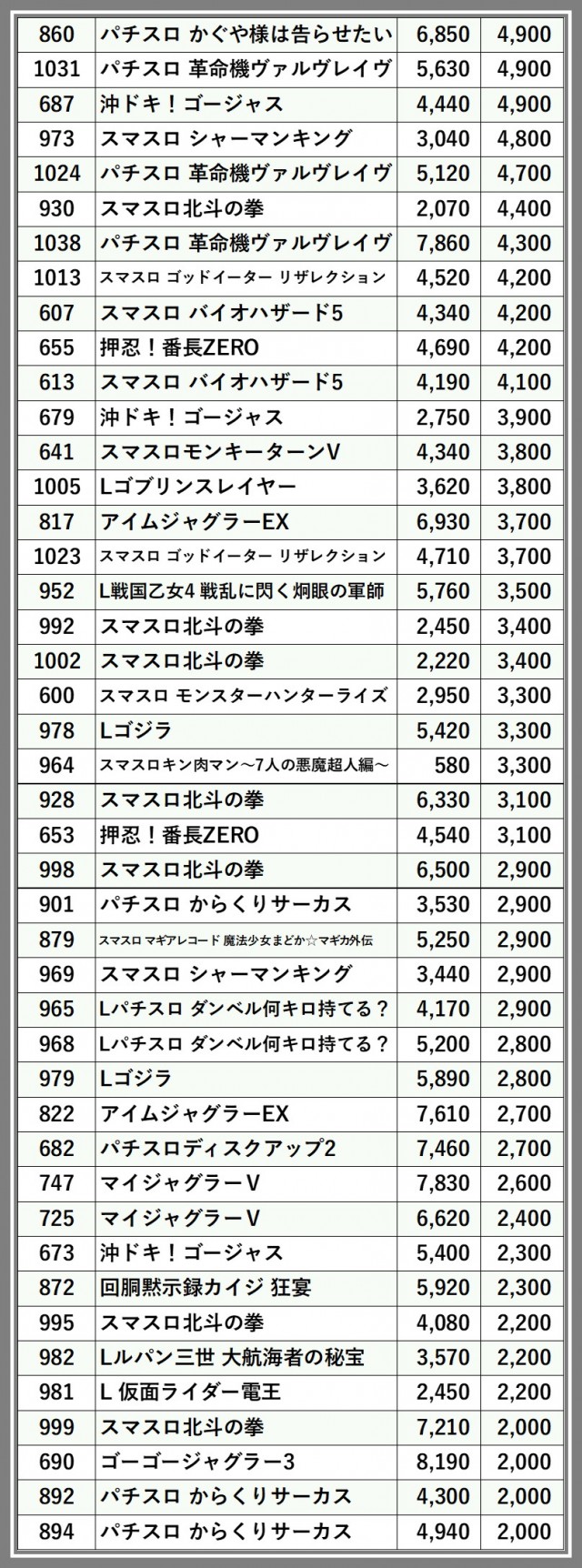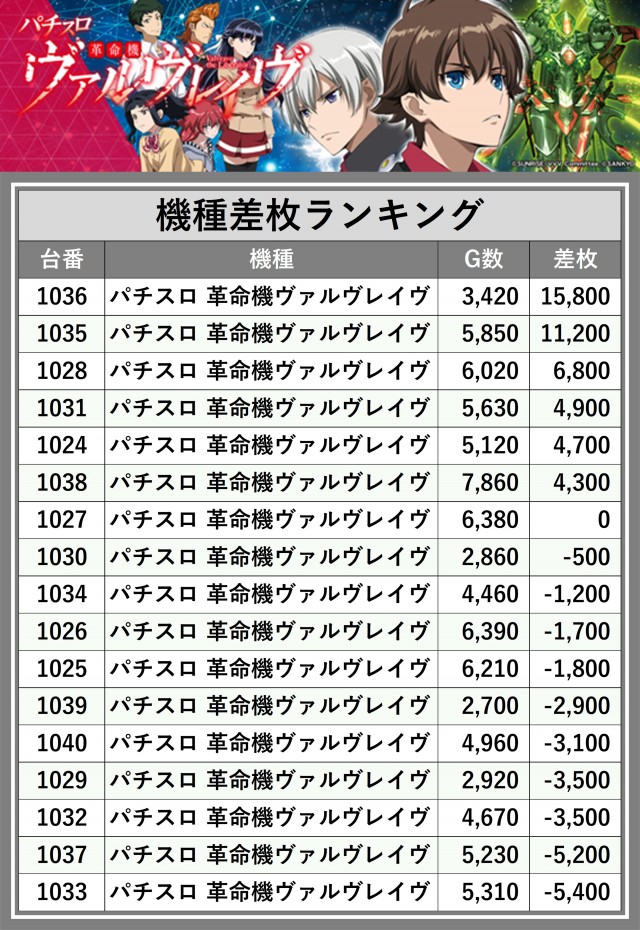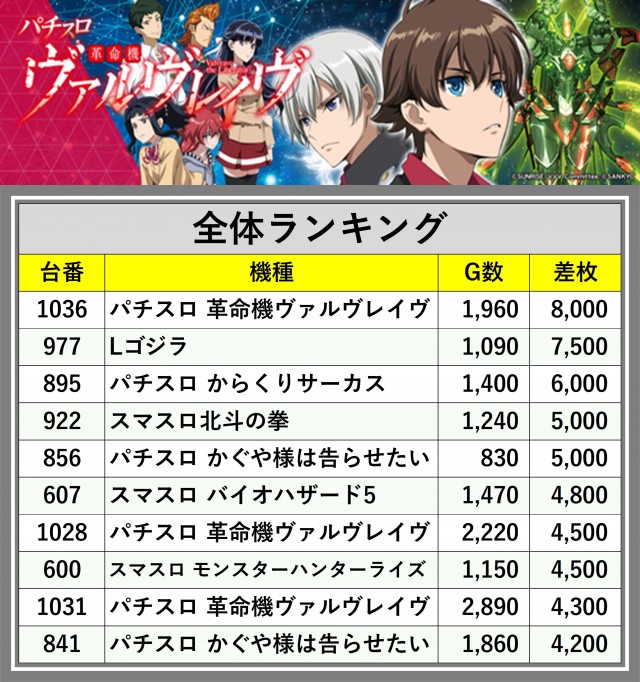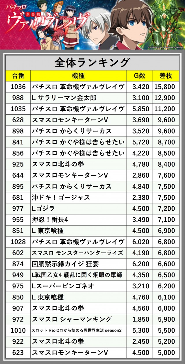 ※差枚数順に掲載しています