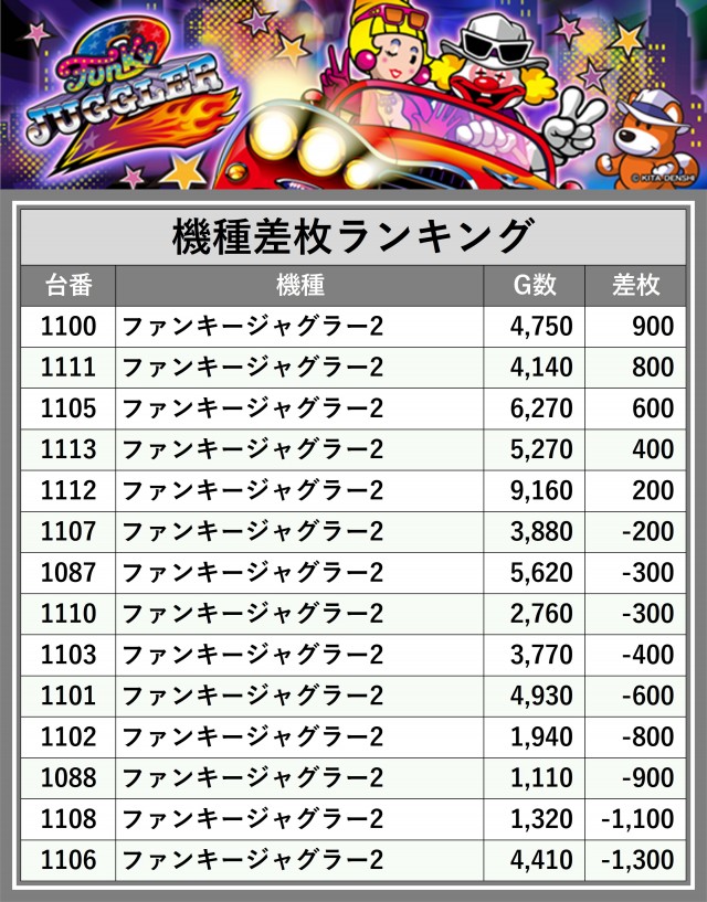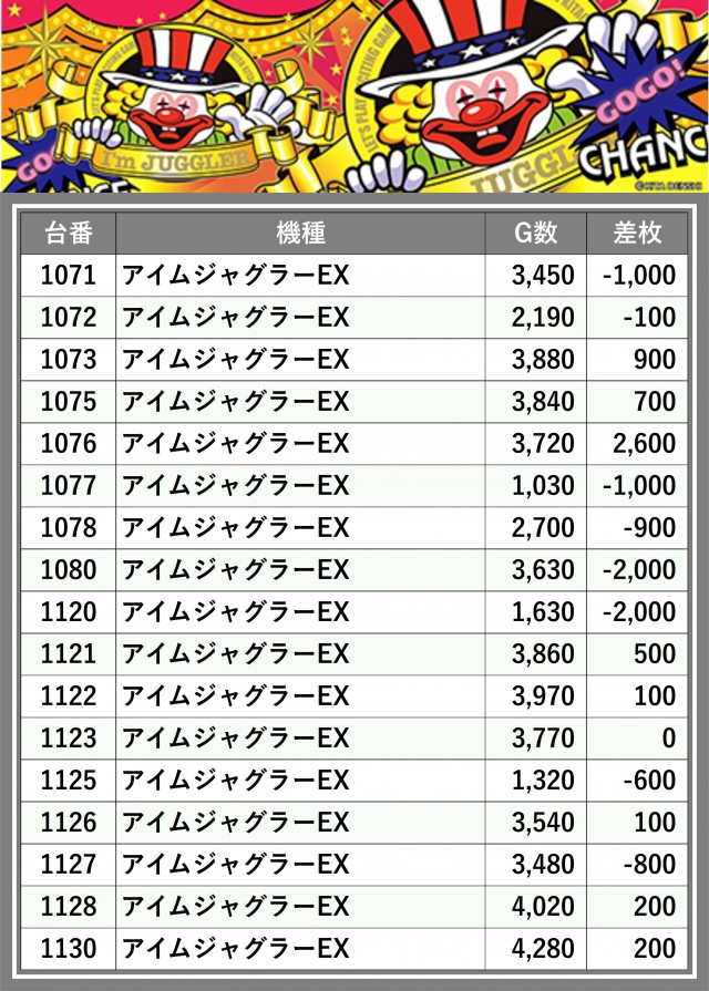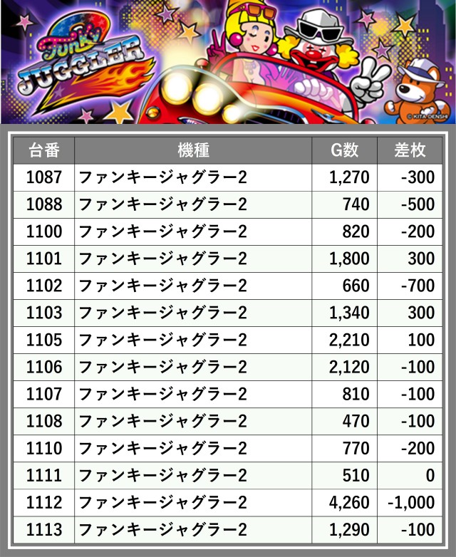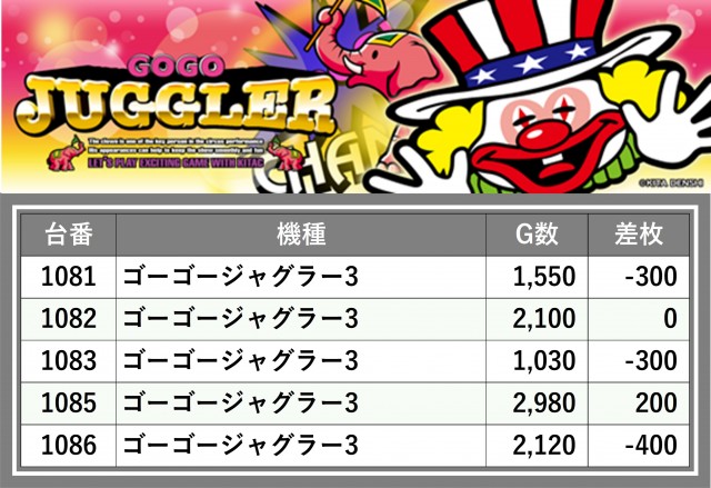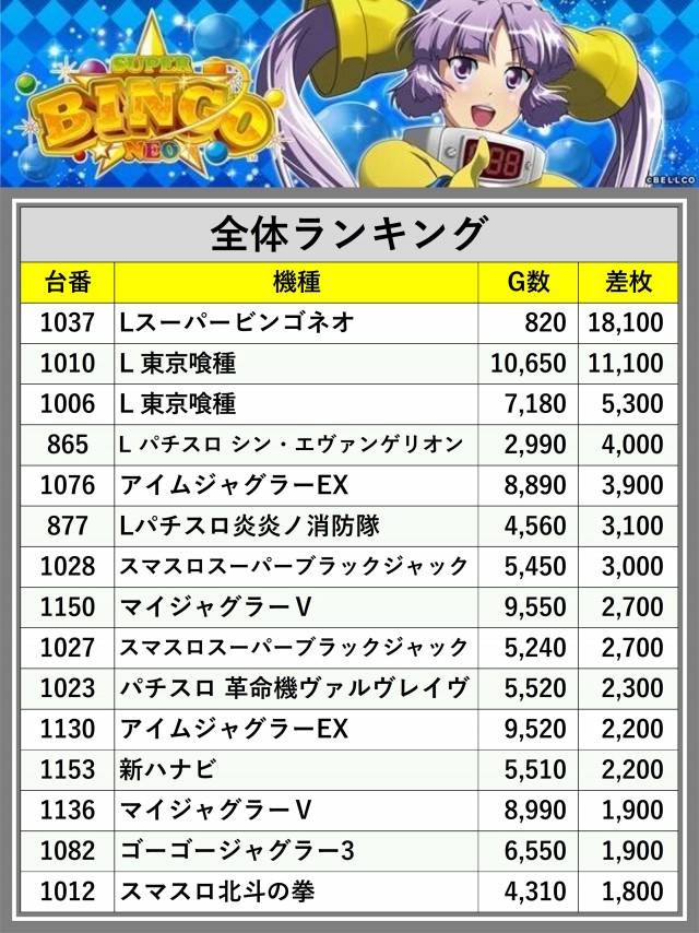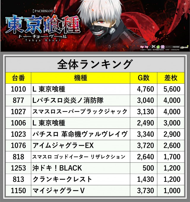 厳選された取材対象機種をはじめ、その他スロット全体から好記録が飛び出した!プレイヤーが楽しんだ1日を下記データにて振り返ってみて欲しい。