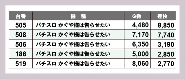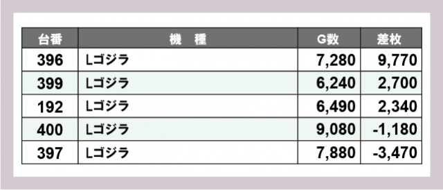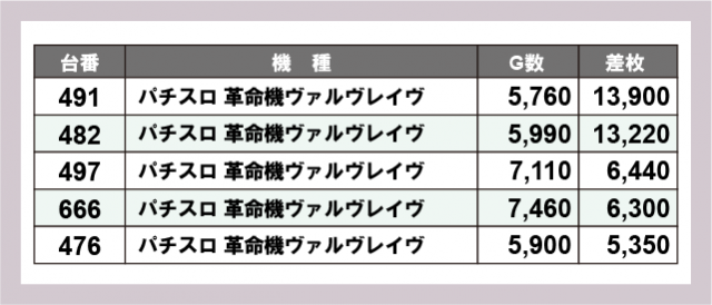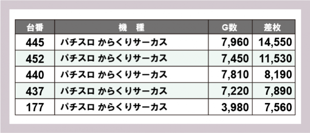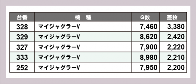 ※差枚数順に掲載しています