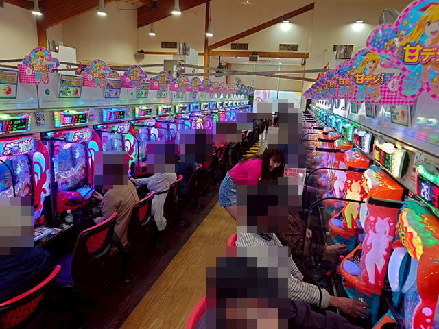 パチスロとパチンコの各コーナーから活気が感じられた「夢屋恵那店」。