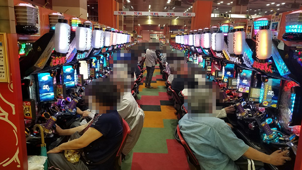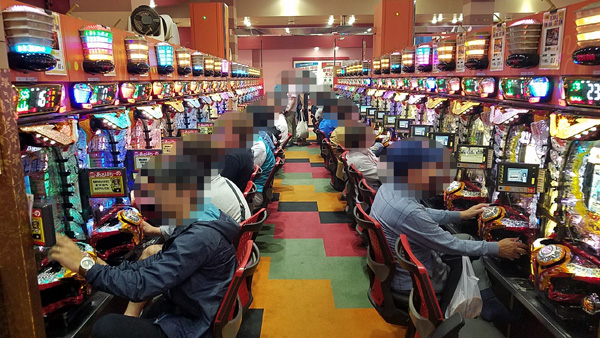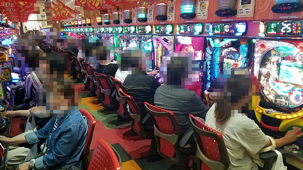16時ごろの4円パチンコをのぞいてみると、多くのプレイヤーで大盛況。