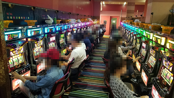 「押忍!番長3」や「ミリオンゴッド-神々の凱旋-」なども盛況で、機種の性能をうまく活かしたプレイヤーもみられ、シマはにぎやかな状況となっていた。