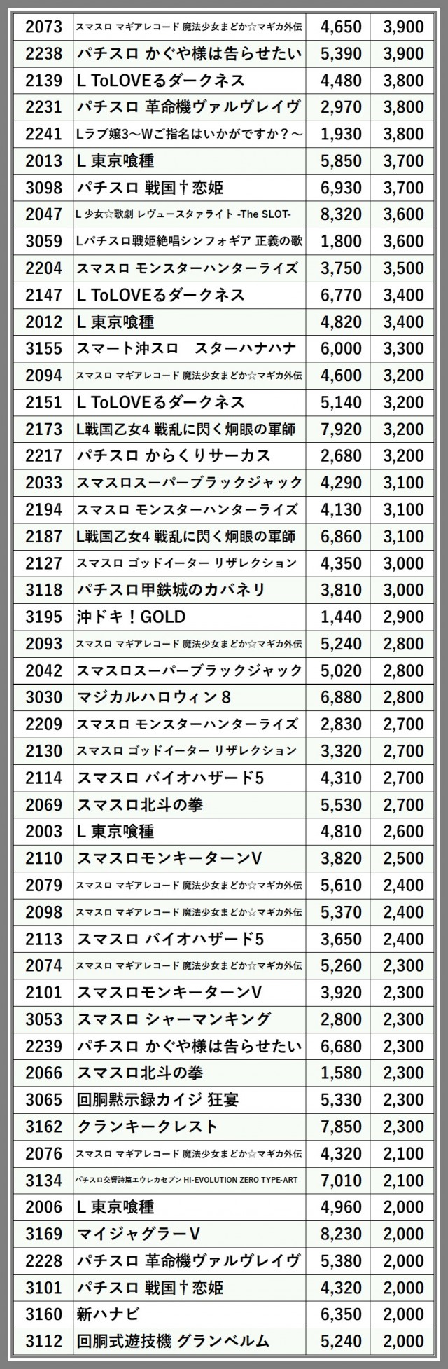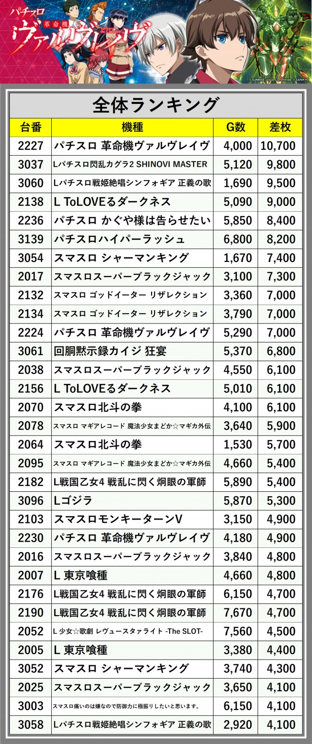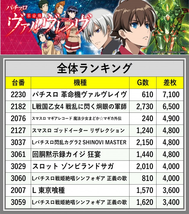 厳選された取材対象機種をはじめ、その他スロット全体から好記録が飛び出した!プレイヤーが楽しんだ1日を下記データにて振り返ってみて欲しい。