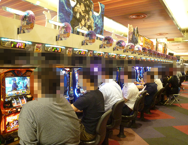 14時頃の4円パチンコをみると、満席となっている機種が多数。