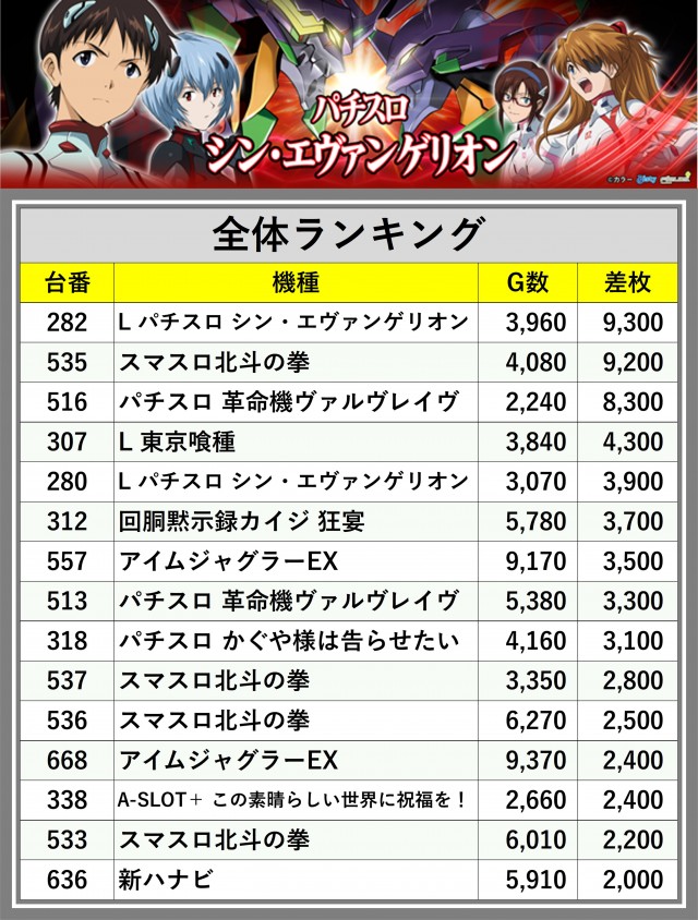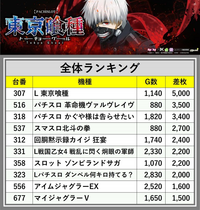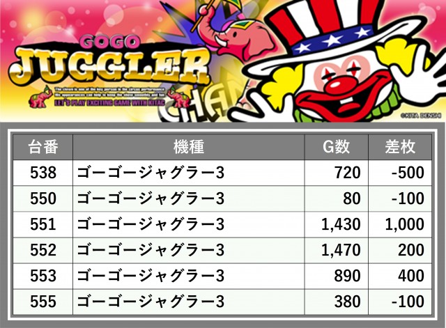 厳選された取材対象機種をはじめ、その他スロット全体から好記録が飛び出した!プレイヤーが楽しんだ1日を下記データにて振り返ってみて欲しい。