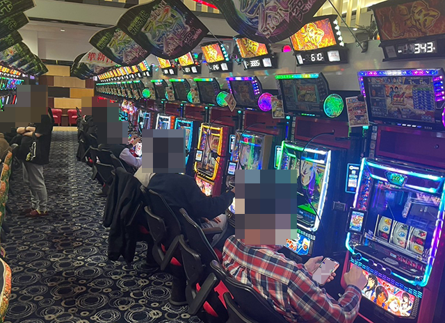 『パチスロ からくりサーカス』や『L戦国乙女4 戦乱に閃く炯眼の軍師』が満席となっており、いくつもの台で楽しげな姿がみられた。