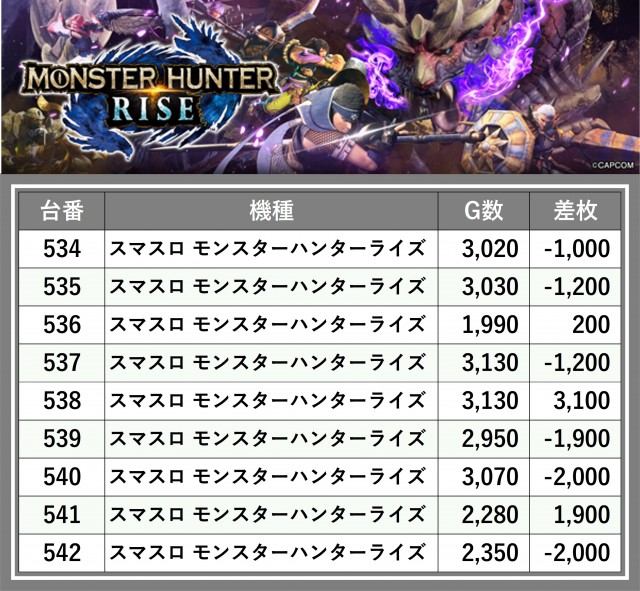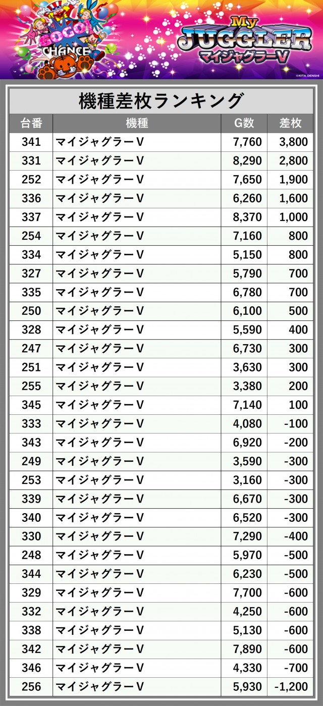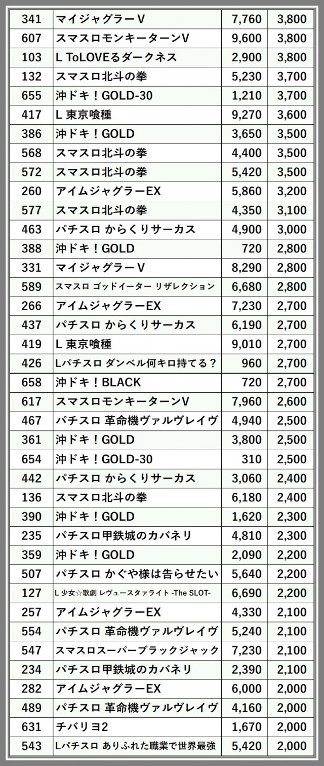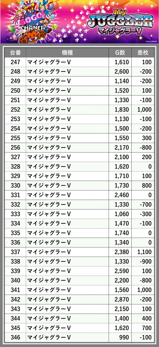 厳選された取材対象機種をはじめ、その他スロット全体から好記録が飛び出した!プレイヤーが楽しんだ1日を下記データにて振り返ってみて欲しい。
