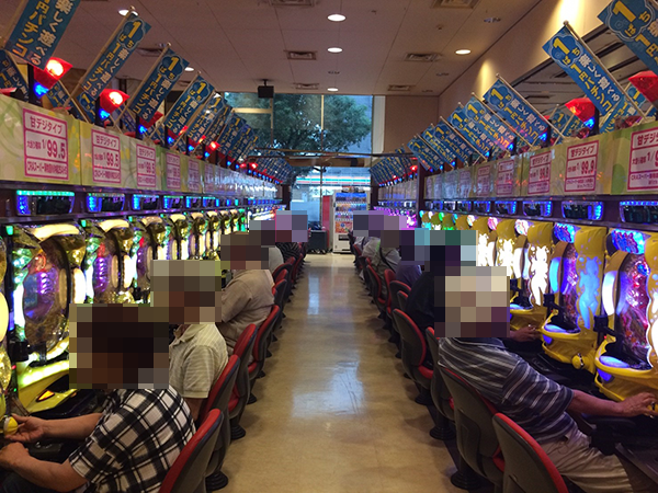 海物語シリーズをはじめ、「ぱちんこCR北斗の拳7 転生」や「CRA牙狼金色になれ~ザルバとの契約~」など、たくさんの機種に楽しそうな光景が広がっていた。