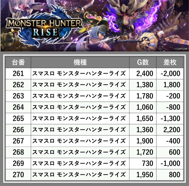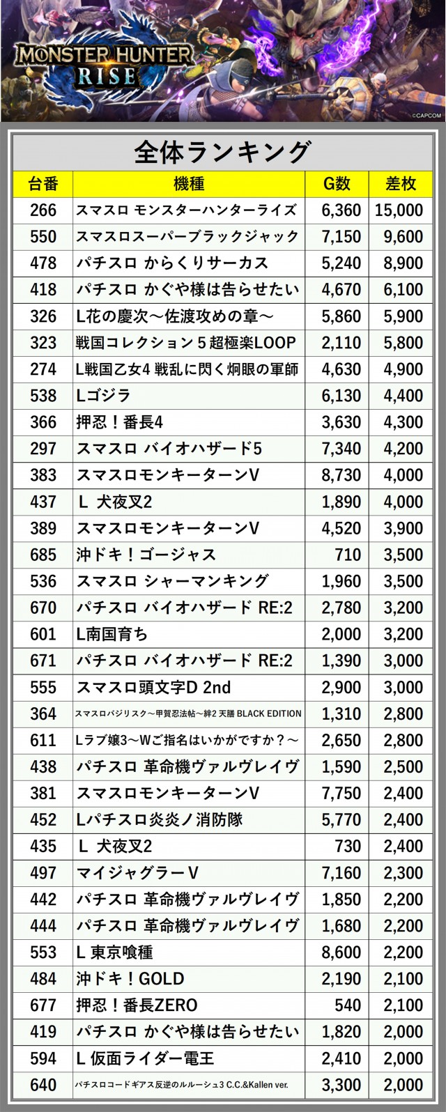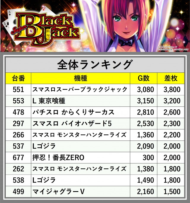 厳選された取材対象機種をはじめ、その他スロット全体から好記録が飛び出した!プレイヤーが楽しんだ1日を下記データにて振り返ってみて欲しい。