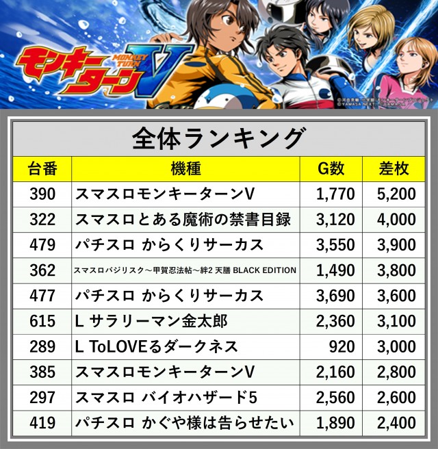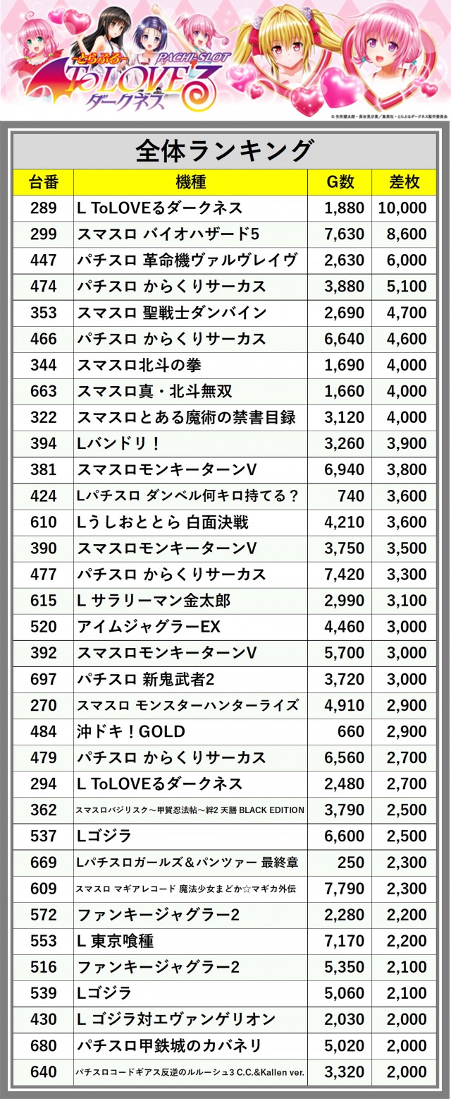厳選された取材対象機種をはじめ、その他スロット全体から好記録が飛び出した!プレイヤーが楽しんだ1日を下記データにて振り返ってみて欲しい。