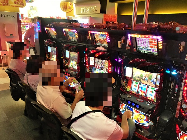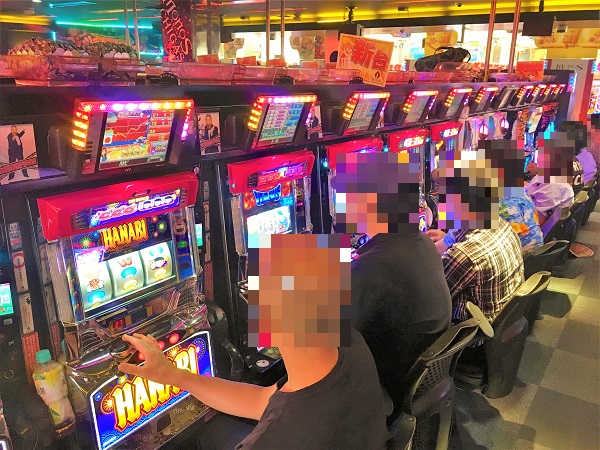 16時を過ぎた4円パチンココーナーで最も活気を感じたのは「CRスーパー海物語IN沖縄4」。ほぼ満席となるほど高稼働を維持しており、多くのプレイヤーが笑顔を浮かべての遊技となっており、シマ全体にも華やかな光景が広がっていた。